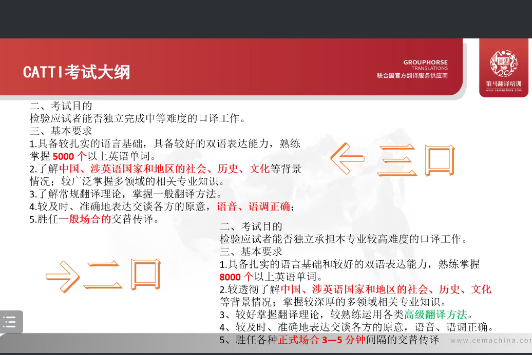 李靖琳老师是策马集团总裁助理、外交部翻译司前高级翻译,曾服务于G20、“一带一路”国际合作高峰论坛、上海合作组织峰会等大型外事活动。本次讲座,李老师以CATTI考试为主题,系统介绍了口译考试的基本要求及题型分值,并提出“语法功底是地基”,提醒同学们一定要加强语法练习。同时,她还建议大家多关注中国热点问题、文化现象、对外关系、医疗卫生等相关常考话题。临场经验方面,李老师表示,考试时一定要专注自我,保持适当音量,稳住良好心态,坚持译完全文,不要被外界的声音干扰。此外,李老师还结合教学经验指出几个备考关键点,即:每周重点训练一个主题,加强理解;循序渐进练习,热点放在考前;考试钟点多加练习,形成惯性;保证翻译时长,制定合理的学习计划。