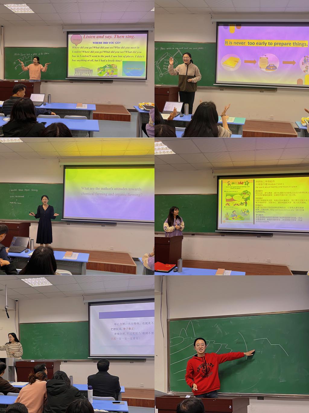 随后,参赛选手徐晓慧、刘子涵、张文馨分别从备赛方法、教姿教态与板书设计方面分享了心得与经验,在场师生受益匪浅。