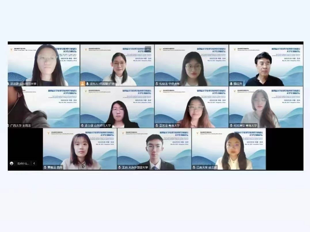 英语语言文学何邓清仪、李盛馨、刘剑宇、夏艺瑄四位研究生,参加了由浙江大学举办的“第四届文学伦理学批评跨学科研究大学生领航论坛”,并在专题论坛上进行了论文宣读。