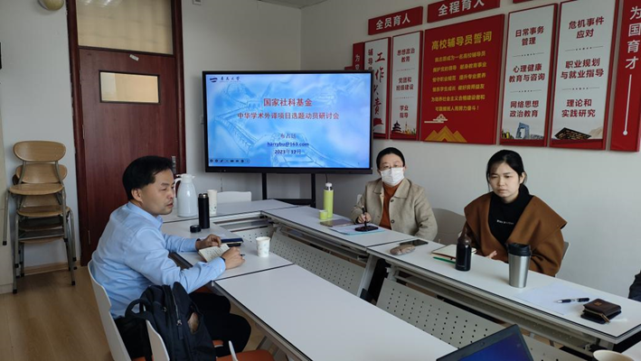 召开了国家社科基金中华学术外译项目申报研讨会,布占廷副院长做动员报告,学院骨干教师参加研讨会。