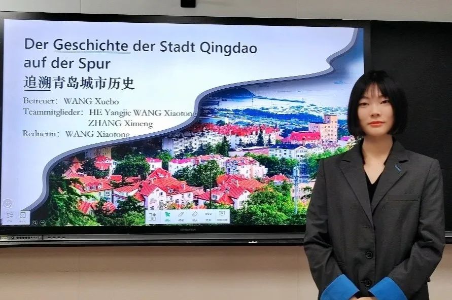 我系团队参赛项目为“Der Geschichte der Stadt Qingdao auf der Spur”(追溯青岛城市历史),团队从德占青岛时期史料出发,研究德国文化与青岛文化融合过程中语言的碰撞与演变,从“青岛”“中山路”“啤酒”3个看似平常的名称出发挖掘语言背后的城市发展史,讲述历史背后的故事。在比赛中,A片无码
