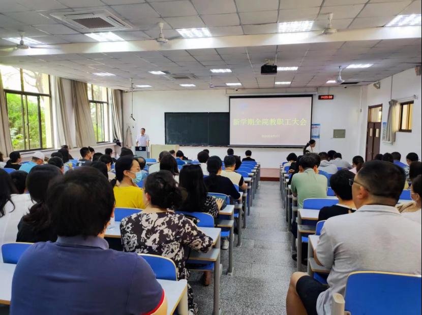 在博学楼103会议室召开2023年秋季学期教职工大会,传达学校相关会议精神,部署学院2023年新学期主要工作。