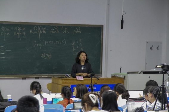 首场讲座由马秋武教授主讲,题为“音系学:基本理论与分析方法”,历时三个多小时。马教授通过“音”的定义,深入浅出地介绍了生成主义音系学与结构主义音位学之间的区别,并阐述了生成音系学的研究框架。接着,马教授在“和谐串行理论(HS理论)及其在汉语中的应用”的讲座中,介绍了优选论(OT)的发展,并指出HS理论是一种新的带推导的OT理论。此外,马教授还做了普通话语调音系分析的讲座分享。