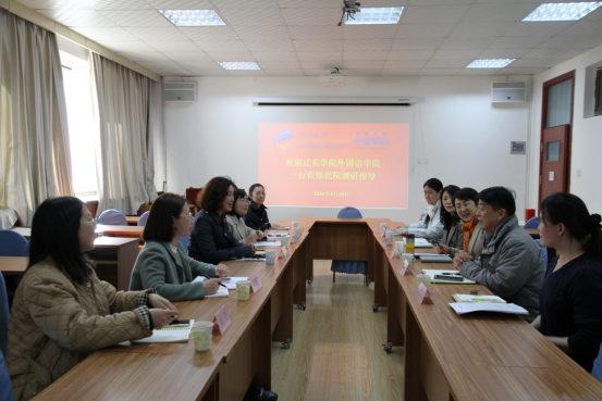 对辽东学院一行表示热烈欢迎。随后,双方就各自学院的基本情况、学科建设、人才培养等方面进行了介绍,并分享了各自在教学管理、课程设计以及学生发展方面的经验和措施。特别是针对朝鲜语和日语专业的人才培养方案修订、专业建设、课程设置、学生实践活动、毕业论文及就业等问题展开了深入讨论。