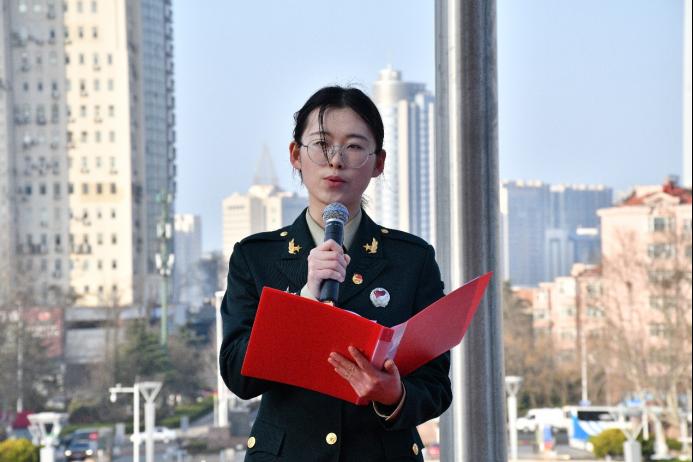 2023级退役火箭军张颖进行国旗下的主题演讲《请放心吧,祖国!》,她深情回顾了自己的军旅生涯,讲述了在部队中锻炼成长的故事,始终以坚定的信念捍卫祖国的疆土与尊严,时刻将自己对祖国的深情与担当贯穿于点滴生活中。