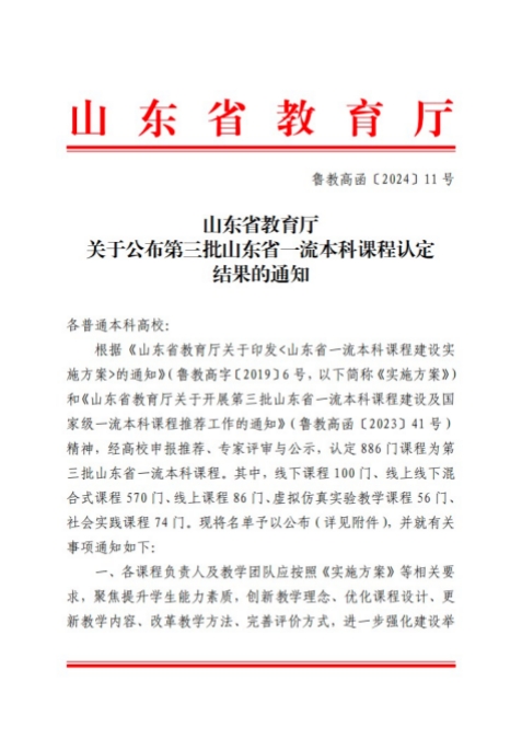 近日,山东省教育厅公布了2024年第三批山东省一流本科课程认定结果,共有886门课程被认定为山东省一流本科课程,A片无码