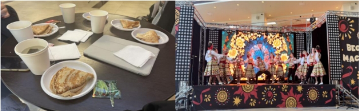新学期伊始,同学们便赶上了俄罗斯当地的传统节日——谢肉节。作为一个历史悠久、充满文化特色的节日,谢肉节承载着俄罗斯人民对春天的期盼和新生活的向往,同时展现了俄罗斯独特的历史和国情。在谢肉节期间,远东联邦大学免费为学生提供圆饼七天,学校的教学楼里从早到晚都有学生们自发的表演,包括杂技、民族舞蹈和流行歌曲等,令人难以忘怀。学校也组织了各种节日游戏,营造了浓厚的欢乐氛围,让同学们沉浸其中。
