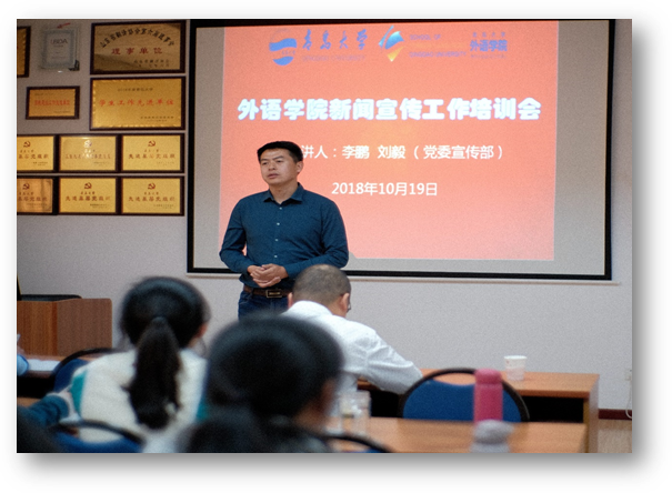 培训会上,李鹏、刘毅两位老师还结合自身工作经历和个人感悟,与参加培训的师生交流了做好新闻宣传工作,讲好青大故事,传播青大声音的重要性。
