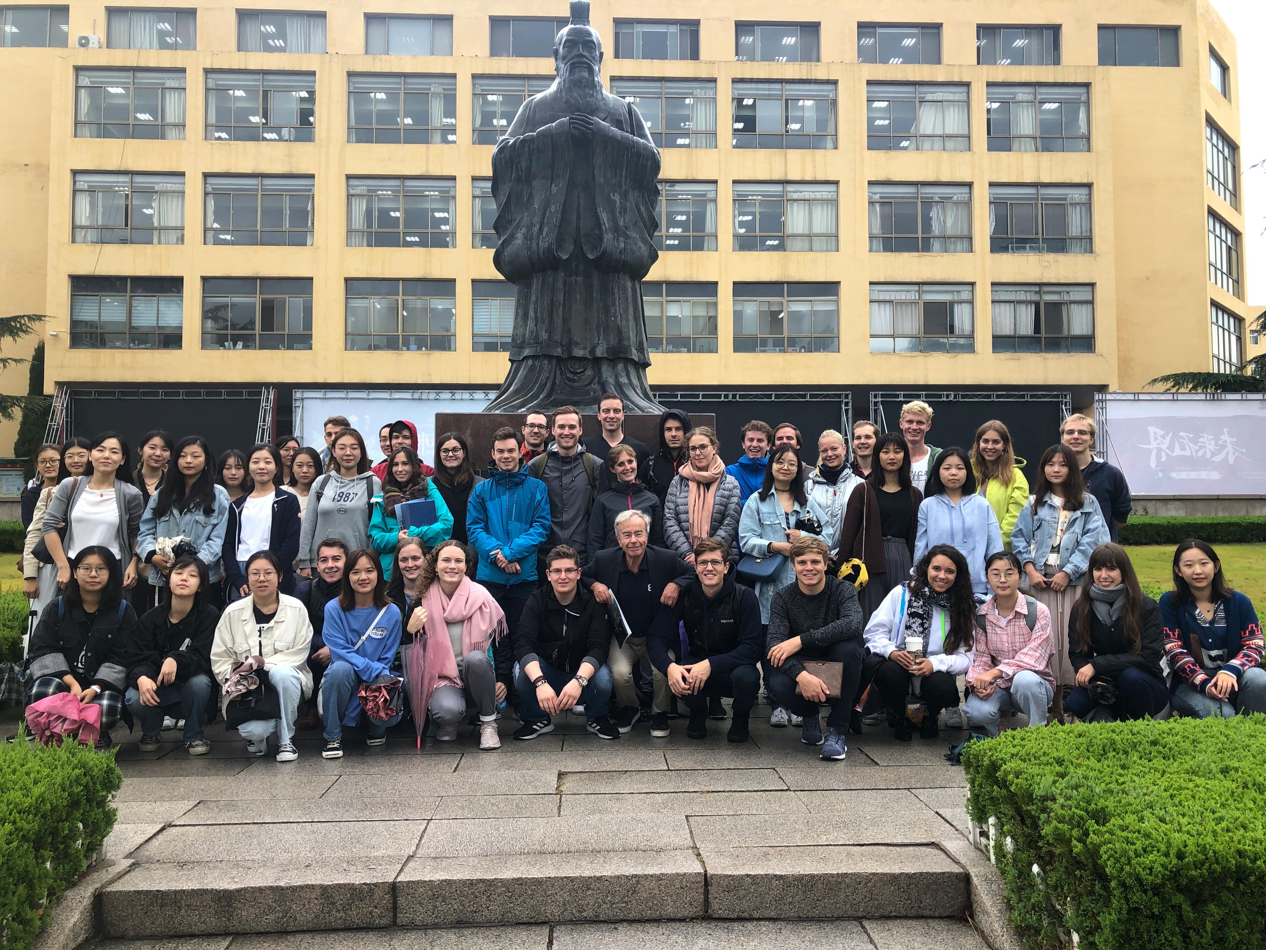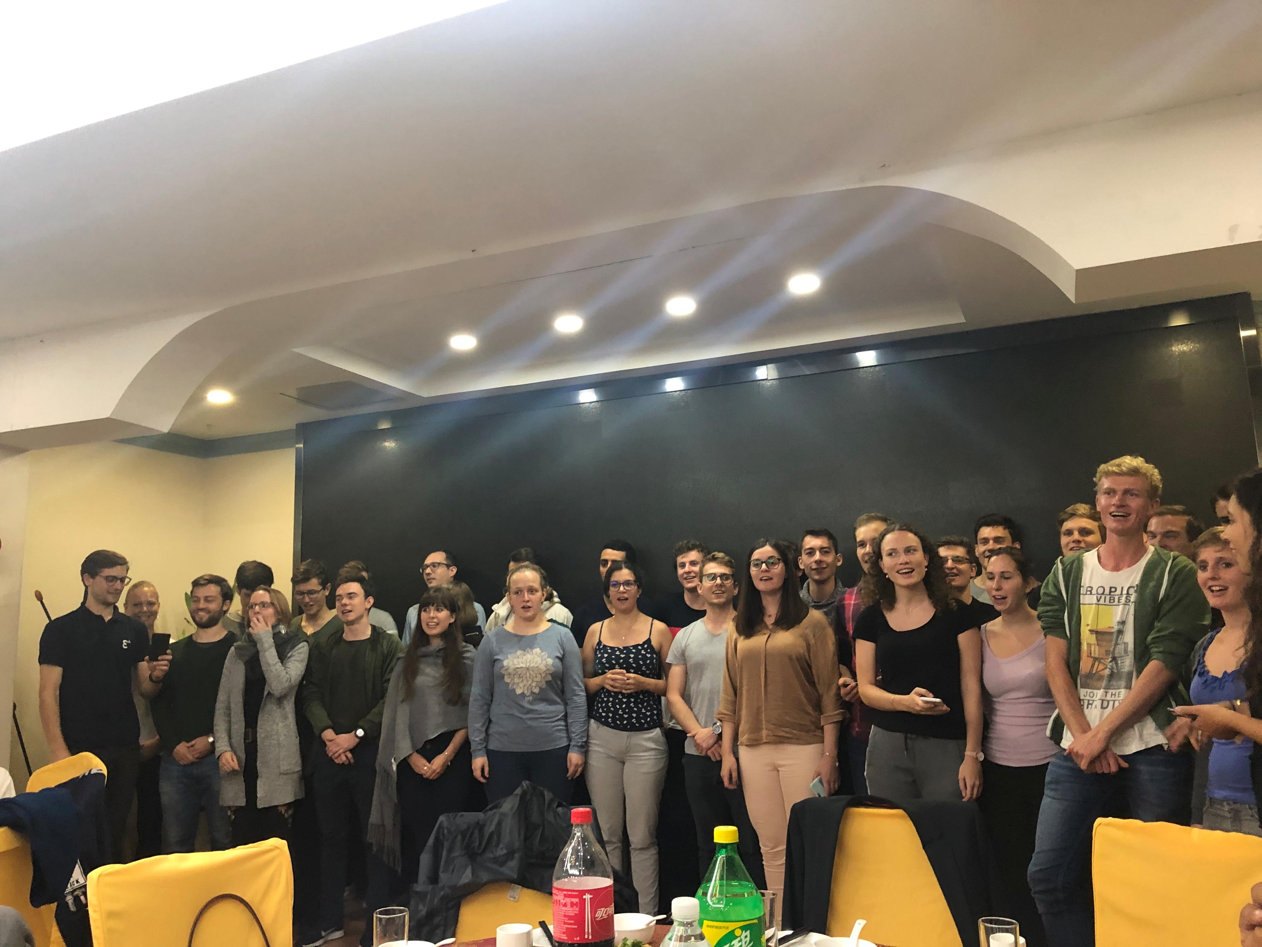 随后,在Kuepper教授和曹杉老师的主持下,近80名中、德学生就“中国形象”及“德国形象”这一话题展开了热烈讨论。德国学生们反复提到中国是历史悠久、文明开放、科技领先的国家,此行能够亲眼所见中国的高速发展令他们惊叹。讨论结束后,德语系学生与德国学术分别献唱了歌曲,最后共同演唱了德语歌曲“Lotusblume”,依依不舍地结束了此次访问。双方表示,希望在更广泛、更高层次的领域不断建立新的交流与合作。