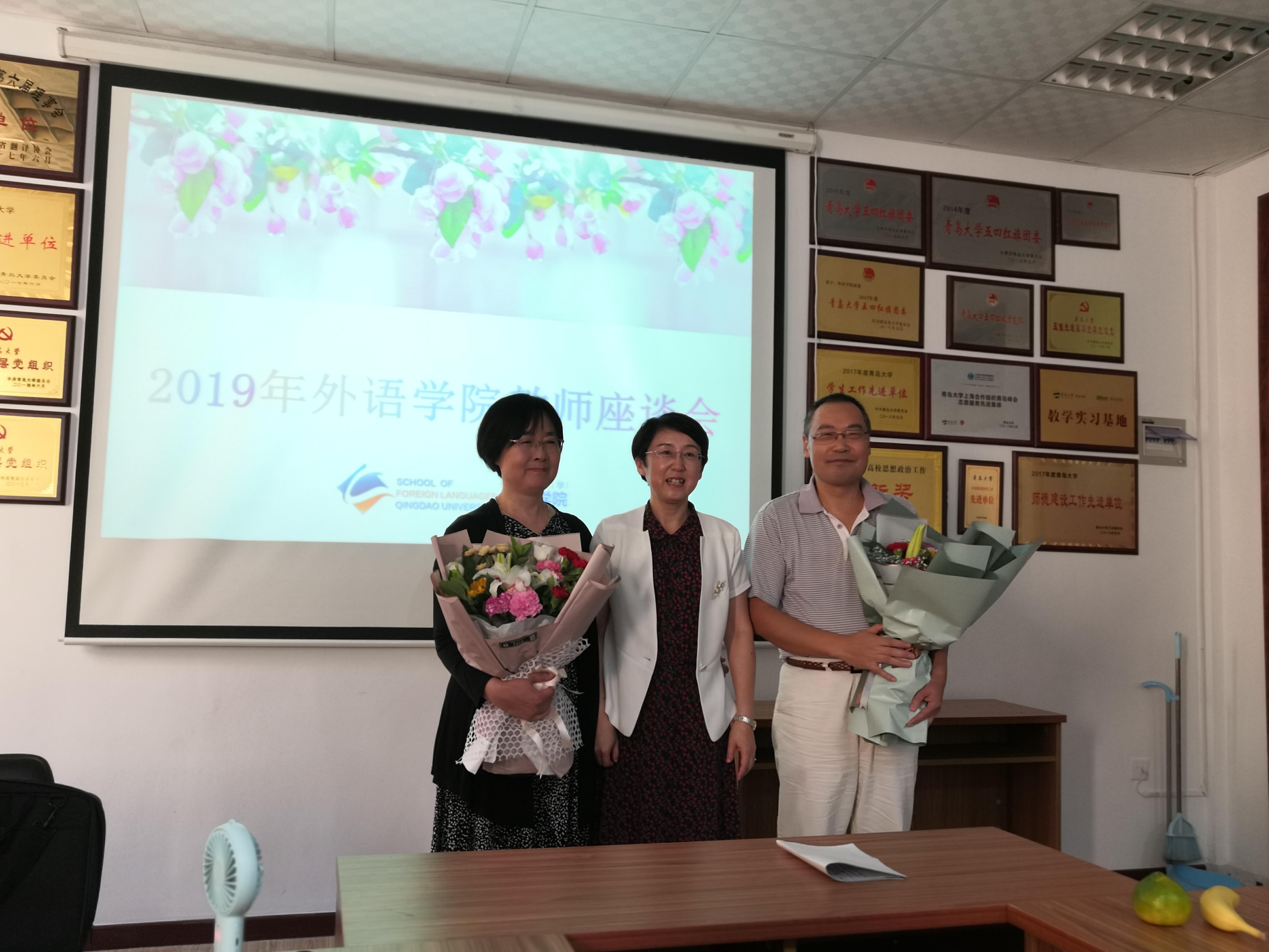 在博文楼312会议室召开教师节座谈会。座谈会由院党委书记王传永主持,学院领导班子成员,各教学系主任,各办主任,特聘教授,从教三十年教师代表,2019年退休教师和新入职教师参加。
