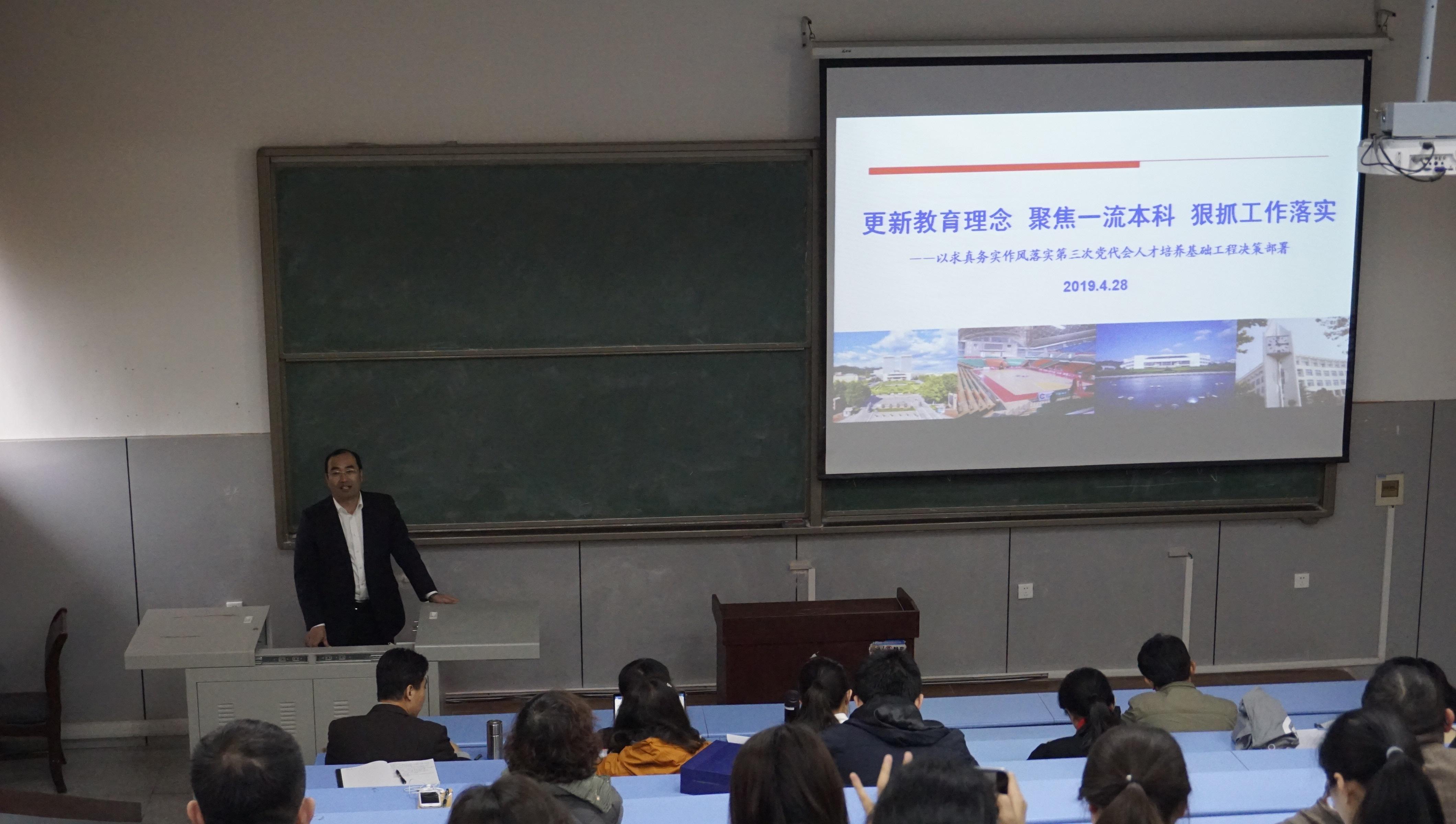 孔伟金作了题为“更新教育理念 ,聚焦一流本科,狠抓工作落实”的专题报告。