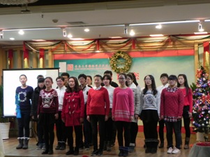 活动开始前,2013级同学对会场进行了精心的布置。精美的圣诞装饰使现场充满了浓厚的节日氛围。来宾就座后,随着外教盖纳特先生的吉他伴奏,大家合唱了一首《Guten Abend, schönen Abend(晚上好,晚上美)》(,晚会就此拉开了序幕。