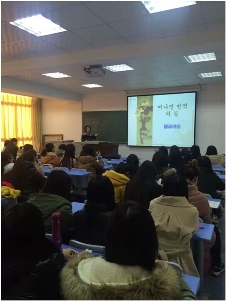 韩语系特邀金莲兰教授就“中韩/韩中翻译”进行专题讲座。金莲兰教授曾供职于电视台记者,自由翻译人,翻译经验丰富,文学造诣较高。该讲座主要面向韩语系3,4年级的本科生和研究生,博文楼302教室座无虚席。金莲兰教授主要针对如何培养翻译兴趣以及如何提高中韩/韩中翻译能力展开讲解,通过主讲人的翻译历程和切身体验来激发同学们的翻译潜能;要求同学们把翻译看成是“作品的再创作”,提升文学素养和文字功底。并且,通过翻译实例,具体讲解翻译中容易出现的错误和应对技巧。讲座生动而不乏精华,娓娓地向学生们灌输了翻译的成才之路。韩语系各位老师也参加了该专题讲座。