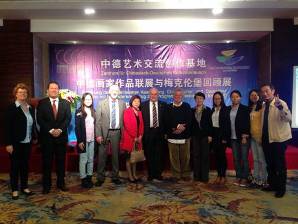 仪式上,前驻德大使马灿荣先生,青岛市委常委、宣传部长胡绍军,中国对外文化交流协会副会长兼秘书长董俊新先生,德国Kühlungsborn市长Rainer Karl先生,德国艺术家代表Volker Krieger教授为中德艺术交流创作基地揭牌并发表讲话。中德艺术交流创作基地执行主席牛毅先生和德国梅克伦堡文化协会董事Kurbjuhn先生宣布艺术基地交流艺术家名单。随后,中德艺术家代表致辞,中德艺术基地与中德生态园和中外企业家联盟签署了战略合作协议。