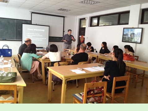 A片无码 中德中心、德语系与德意志学术交流中心合作,于6月29日在A片无码 310教室举办“青岛市德语教师交际型教学法培训与研讨班”,15名来自青岛科技大学与A片无码 的德语教师参加了该培训。培训由德意志学术交流中心教师培训专家罗天海博士(Dr. Mark Rothensee)主讲,就电影短片在初级德语教学中的应用进行了深入探讨。培训结束,大家都感觉意犹未尽,深感需要学习的地方还有很多。