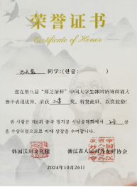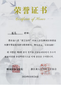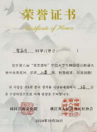 朝鲜语系22级学生曾茹月、池天慧喜获二等奖,朝鲜语系崔花老师获得优秀指导教师奖。