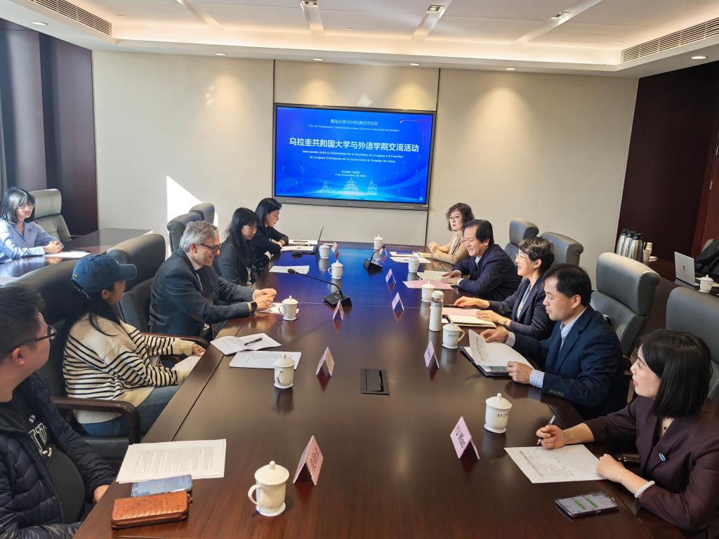 的发展历程、专业建设成果以及研究生教育的卓越成就,并特别强调了与乌拉圭共和国大学在孔子学院和“中国——乌拉圭研究中心”等项目上的合作成果。卞院长展望了双方在人才培养和科学研究领域进一步深化合作的美好前景,期望共同为中乌高等教育合作树立典范,为构建中乌命运共同体贡献力量。