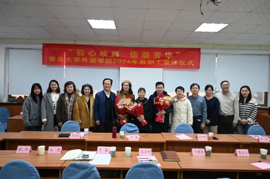 举办了“初心映辉,语颂芳华”2024年教职工荣休仪式。荣休教师于华、张积模、芮巧燕、李兰及院党委书记陈崇研、院长卞建华、副院长布占廷、王薇、曹杉,英语系副主任张驰,英语教育系副主任吕凯良,日语系副主任杜雪丽参加活动。仪式由院党委副书记于苗主持。