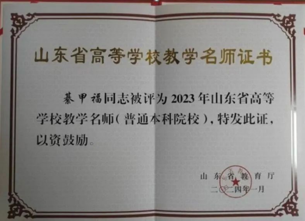 綦甲福教授获评“山东省教学名师”