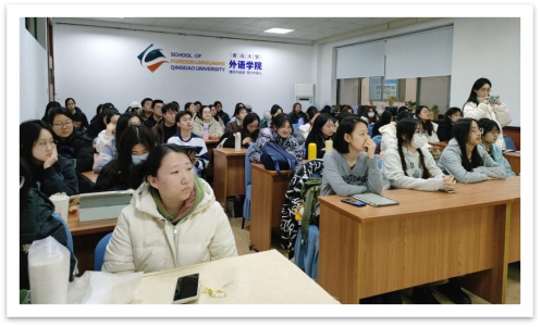 副院长布占廷副教授主讲,吸引了英语教育专业本科生、研究生等50余人参加。布占廷副院长从人才培养目标出发,简要介绍了国内多种面向师范生的教学比赛,并以山东省师范类高校学生技能大赛为例,系统讲解了教学比赛宗旨、教学技能提升思路及策略等内容,并为大家推荐了阅读书目,提出了备赛计划。