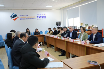 的总体发展情况,綦甲福介绍了德语系目前的国际交流合作情况。巴符州双元制大学略拉贺校区企业经济管理学旅游专业主任Weislämler教授介绍了该校企业经济管理学旅游专业的相关情况。德方代表团还与在场的德语系高年级本科生进行了互动交流,并介绍了该校的暑期大学项目。之后双方围绕如何开展合作进行了深入交流。