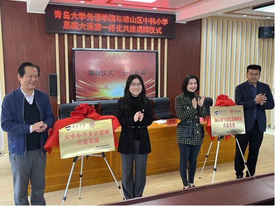 与青岛崂山区中韩小学联合举办的“大中小学多语思政共建基地”及“脑认知与语言科学研究中心共建基地”揭牌仪式在青岛崂山区中韩小学举行。 A片无码