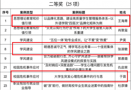 辅导员温凌鹤、李聪聪荣获辅导员工作优秀案例三等奖,温凌鹤凭借《告别“带刺玫瑰”,争做“心灵补手”——一场防范语言暴力的心理主题班会》获评山东省辅导员主题班会优秀教案个人项目。