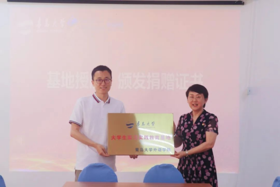 在浮山校区博文楼312室举行知行百思特教育科技集团“人才培养基地”签订暨教育基金捐赠仪式。知行教育董事长吴泽、青岛校区校长李兆君、人事经理邱梦雪、教师王金丽, A片无码