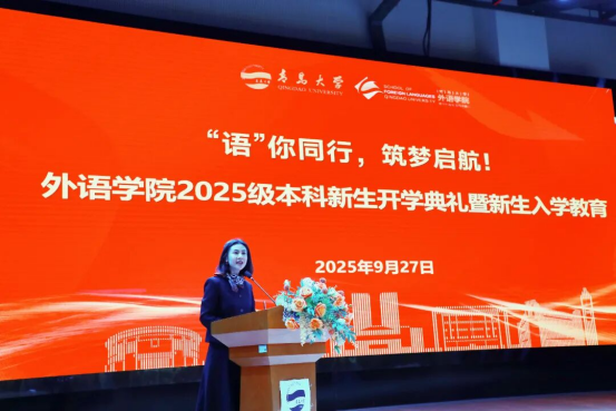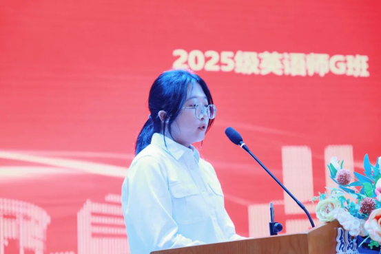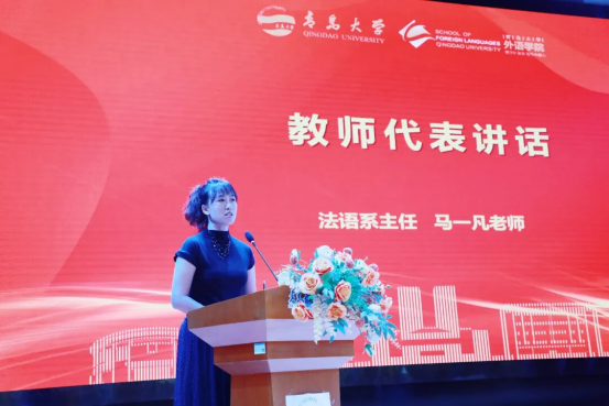 教师代表马一凡结合实例,指出具备情感交流能力与跨文化沟通能力的外语人才有着不可替代的价值,进一步坚定了同学们加强专业学习的信念。同时,她提醒新生要夯实语言基本功、提升沟通合作能力、学会承担责任、合理规划职业方向,并对新生的未来规划和发展表达了最诚挚的祝福。