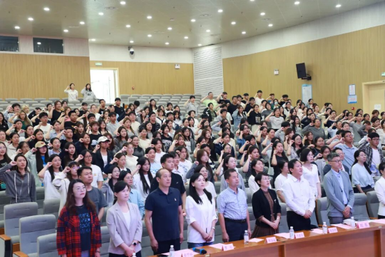 典礼在庄严的国歌声中拉开帷幕。昂扬的旋律回荡在报告厅,激荡着每个人心中的拳拳爱国心,更点燃了新生们的青春志气。