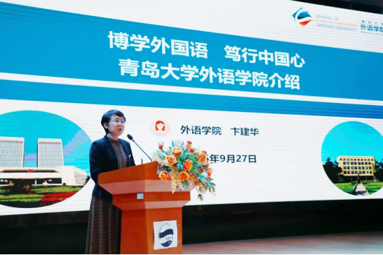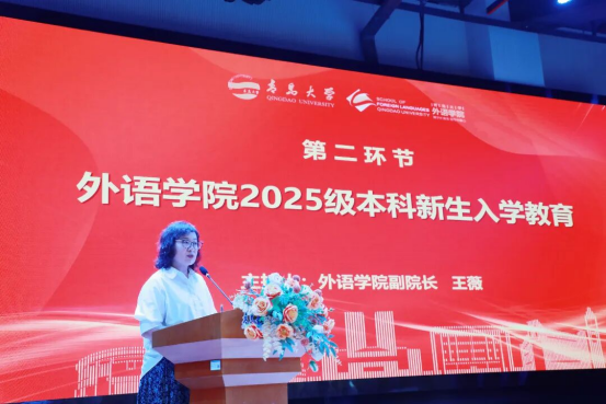 卞建华向全体师生表示热烈欢迎和诚挚祝贺!卞建华从学校与学院的发展概况、办学定位与人才培养目标、师资队伍与教学资源配置、多语言“大思政教育”品牌社团和特色活动四个方面回答了同学们关于“为什么学外语”、“怎么学外语”以及“学外语将来能做什么”的疑惑。她强调,在未来的学习生活中,学院将为同学们提供最优质的平台和最有力的支持,希望同学们牢记“明德、博学、守正、出奇”的校训和“博学外国语,笃行中国心”的院训,努力成长为兼具中国灵魂与世界眼光、语言技能与人文底蕴、创新精神与实践能力的卓越外语人才。