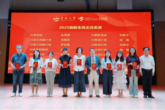 陈崇研为2025级新生班主任颁发聘书。聘书虽薄,却饱含厚重责任与充分信任,也意味着班主任们正式接过引领新生适应大学生活、助力他们成长成才的重任。