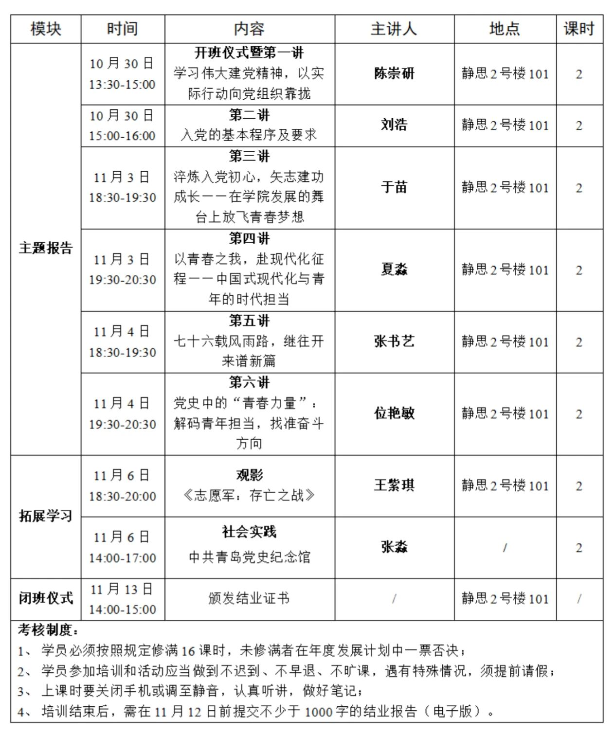 1.学员必须按照规定修满16课时,未修满者在年度发展计划中一票否决;