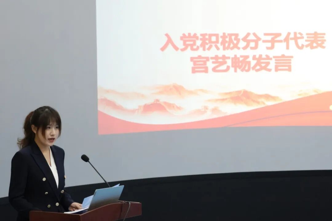 2024级学生宫艺畅作为入党积极分子代表进行发言。她结合自身经历,分享了在深入学习党的创新理论、投身志愿服务和社会实践中的感悟与蜕变,深刻认识到党的伟大精神和使命担当。她鼓励同学们要时刻以党员的标准规范言行,砥砺奋进,勇担时代责任,力争早日加入中国共产党,为实现中华民族伟大复兴的中国梦贡献青春力量。