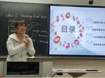 于梦婷老师随后作了题为“破壁·赋能:无生模式下的讲课与说课艺术”的精彩分享。她聚焦于模拟课堂与说课比赛等“无生”场景,通过大量生动案例,层层拆解了课程设计、环节衔接、亮点呈现及技术融合的策略与技巧。
