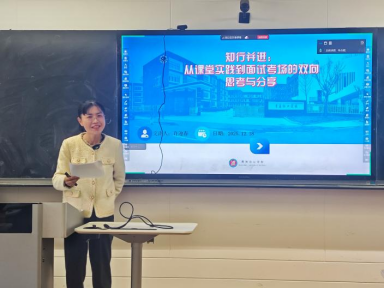 1218日举办了第二期活动。许迎春老师以“知行并进:从课堂实践到面试考场的双向思考与分享”为题,结合自身丰富的教学与面试评委经验,为同学们提供了从“知”到“行”的清晰路径指引。