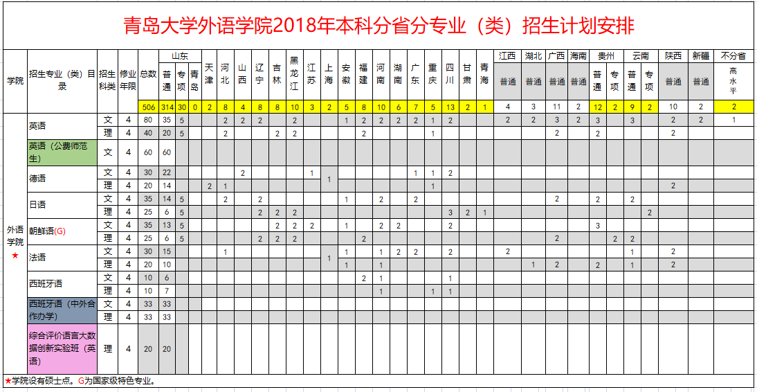 A片无码 2018年本科分省分专业(类)招生计划安排